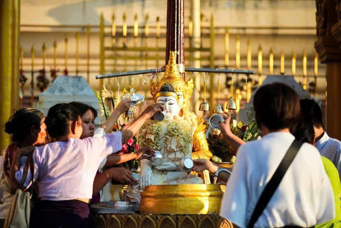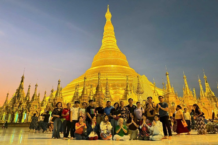 Đoàn đi thăm Chùa Shwedagon – một trong những chốn linh thiêng bậc nhất của đất nước Myanmar. Dù ban ngày hay ban đêm, ngôi chùa luôn phát ra những tia sáng vàng lấp lánh vì chỉ riêng tòa tháp trung tâm đã được chạm khắc vô cùng tinh vi với 9300 lá vàng dát mỏng tương đương 500 kg và hàng ngàn viên kim cương, đá quý cùng hàng trăm chiếc chuông vàng. Trong chùa còn lưu giữ 8 sợi tóc của Đức Phật Thích Ca - bảo vật linh thiêng nhất của Phật giáo.