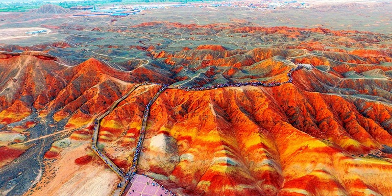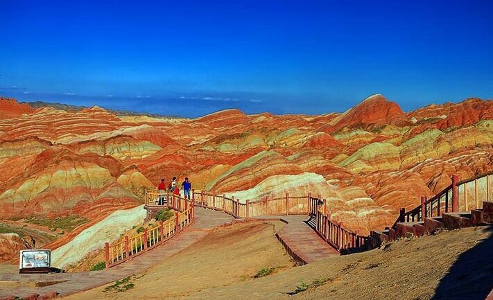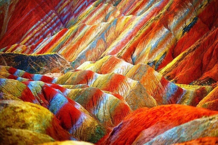 - Công viên địa chất Trương Dịch Đan Hà – hay còn gọi là Địa Mạo Đan Hà là một khu vực cực kì rộng lớn, trải dài từ miền Đông Nam đến Tây Bắc của Trung Quốc với nhiều cảnh đẹp hùng vĩ như tranh vẽ. Trong đó nổi tiếng nhất là dãy núi Đan Hà “ 7 sắc cầu vồng”. Đến đây bạn sẽ không khỏi thán phục vẻ đẹp tuyệt mỹ của vùng đất sa thạch đỏ rộng lớn kéo dài từ Đông Nam đến Tây Bắc Trung Quốc. Bên cạnh những khối sa thạch đỏ hình gợn sóng độc đáo, du khách có thể trải nghiệm cuộc đi bộ đường dài đầy thú vị để chiêm ngưỡng cảnh đẹp ở các thung lũng, các dãy núi đá hùng vĩ. Tất cả tạo nên một Địa Mạo Đan Hà sống động và tươi đẹp. Địa Mạo Đan Hà quả là một tiên cảnh trần gian khiến ai cũng phải ngỡ ngàng trước vẻ đẹp hoang sơ, kì vĩ của thiên nhiên.