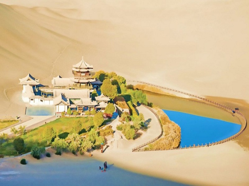 Đôn Hoàng - hòn đảo xanh cô đơn giữa sa mạc khô cằn. Đôn Hoàng là một thị xã thuộc địa cấp thị Tửu Tuyền, tỉnh Cam Túc, Trung Quốc. Nằm trên con đường tơ lụa, Đôn Hoàng là điểm giao thương quan trọng bậc nhất giữa phương đông và phương tây. Đôn Hoàng được biết đến với nhiều di tích đặc sắc Hồ Bán Nguyệt nằm giữa sa mạc Gobi, Hang Mạc Cao, Gia Dục Quan..