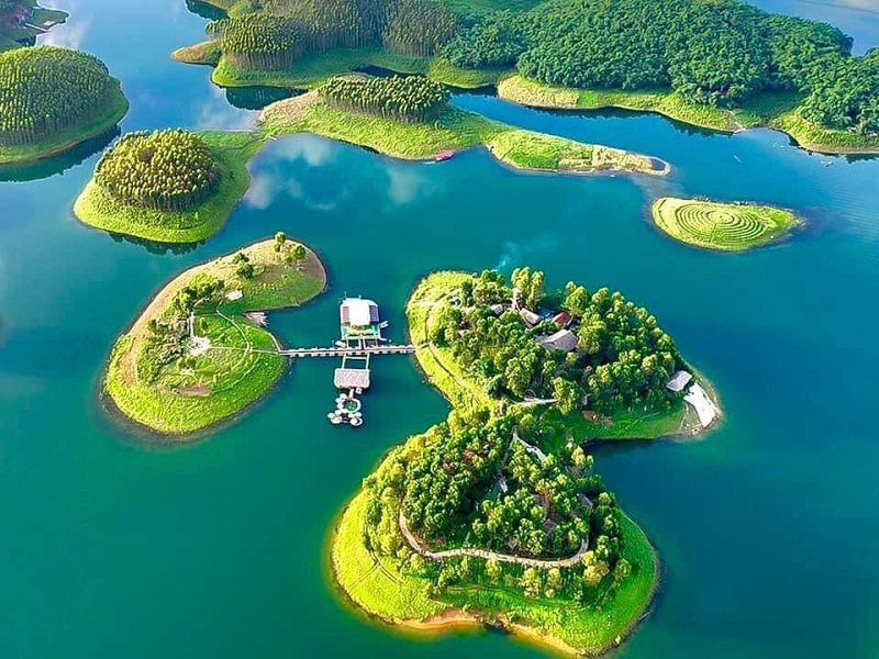 Các điểm tham quan gồm: Nhà máy thủy điện Thác Bà; Đảo xanh và đảo Thiên đường để tham quan chụp ảnh check in, câu cá , chèo thuyền kaizac , uống cafe, đạp vịt , bơi hồ ….