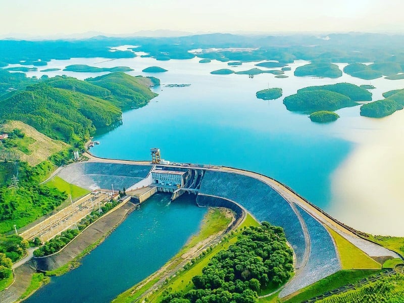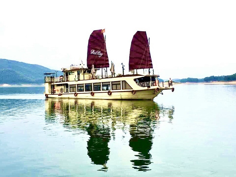 - Tàu xuất phát đến Thuỷ Điện Thác Bà. Đến Thuỷ Điện Thác Bà , khách vui chơi tham quan tại đây khoảng 01 giờ đồng hồ, sau đó đoàn di chuyển lên tàu di chuyến đến Đảo Xanh và đảo Thiên Đường.