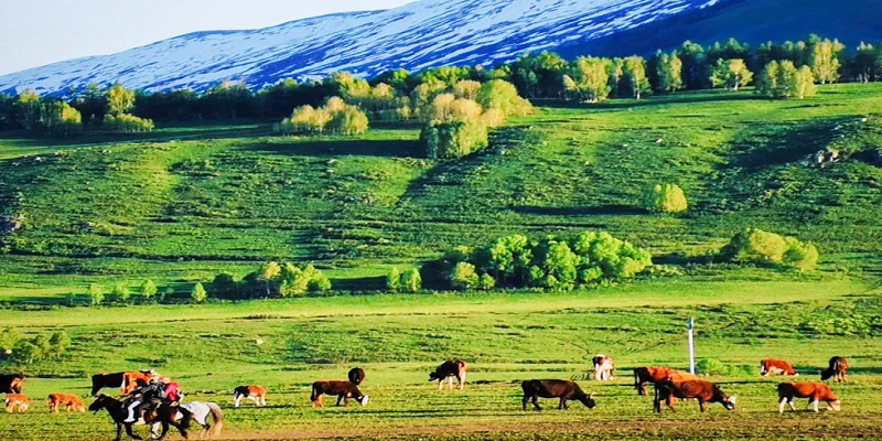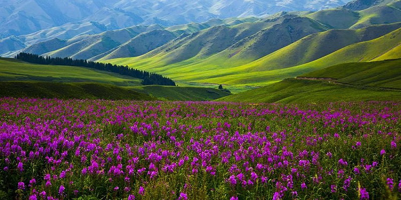 Tân Cương vùng đất huyền bí nhất của đại lục Trung quốc, vùng đất đầy sự kỳ lạ và thú vị, những sông hồ, những cánh đồng hoa bạt ngàn, những thảo nguyên mênh mông hay những cung đường sa mạc đỏ nắng, những khúc đường quanh co rợp bóng cây xanh mát, đâu đó là những hồ nước xanh ngắt, những bóng chim bay trong thung lũng Hòa Mạc đẹp như tranh vẽ... du khách như lạc mê cung của những chợ gia vị đa mầu... và thấp thoáng bóng những thiếu nữ Tân Cương với đôi má ửng hồng như màu tím hồng của chùm nho đang độ chín ...Tất cả sẽ có trong hành trình Nam Bắc Tân Cương này bức tranh thủy mặc mỗi mùa đều có vẻ đẹp riêng ....Nhưng có lẽ mùa xuân -hạ xanh và mùa thu vàng sẽ là những trải nghiệm đẹp hơn cả ....