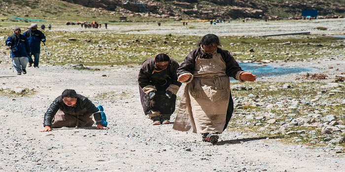 Vòng hành huơng quanh núi Thiêng Kailash gần 52km – Bắt đầu từ Darchen (4574m) sau đó sẽ qua đèo Dolma La vào ngày tiếp theo. Từ Darchen, sau khi đi bộ 8 km, quý khách sẽ đến làng Sarshung và đón những người chở hành lý cùng và trâu yaks. Sau khi đi bộ thêm 2 tiếng nữa, đoàn sẽ đến thung lũng của những người du mục. Sau đó đi thêm khoảng hơn 2 giờ nữa sẽ đến Dirapuk(4920m).