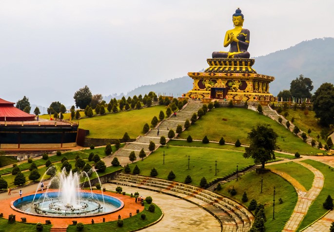 Đến giờ khởi hành đi RAVANGLA - Công viên Phật giáo Ravangla, còn được gọi là Như Lai Tsal, tại Ravangla ở quận Nam Sikkim của bang Sikkim, Ấn Độ - được xây dựng từ năm 2006 đến năm 2013. Qúy khách chiêm bái tượng Phật cao 40 m, được làm bằng 60 tấn đồng - xây dựng để kỷ niệm 2550 năm ngày sinh của Đức Phật. Bức tượng đã được Đức Đạt Lai Lạt Ma thứ 14 thánh hiến vào ngày 25 tháng 3 năm 2013. Bức tượng dựa lưng vào núi Narsing trong quần thể khu phức hợp có một khung cảnh công viên yên tĩnh với những con đường rộng rãi, và có một mật thất Phật giáo, một trung tâm thiền định và một bảo tàng với phòng trưng bày hình xoắn ốc... Ở gần đó là Tu viện Ralang, một tu viện quan trọng của Phật giáo Tây Tạng. Đoàn về khách sạn ăn tối và nhận phòng nghỉ ngơi.