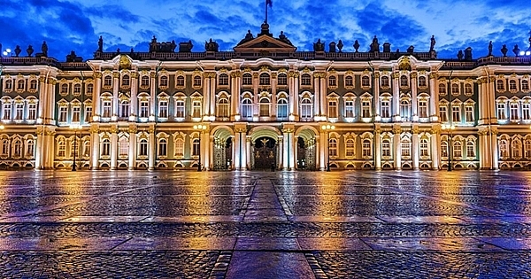 Tham quan Cung điện Mùa Đông ở Saint Petersburg - là nơi ở của triều đình Nga từ thế kỷ 18 đến đầu thế kỷ 20, là một trong năm tòa nhà thuộc Bảo tàng di sản quốc gia Hermitage hiện nay. Bảo tàng Hermitage được thành lập năm 1764, là bảo tàng đứng thứ hai trên thế giới, chỉ sau Viện bảo tàng Louvre ở Pháp. Đây là nơi chứa một kho tàng đồ sộ về văn hóa và mỹ thuật của Nga và Châu Âu, là nơi lưu giữ hơn ba triệu hiện vật đặc biệt quý hiếm, gồm những tác phẩm hội họa, điêu khắc qua các thời đại và những cổ vật của các nền văn hóa xa xưa. Chụp ảnh tại Quảng trường Cung điện mùa Đông.