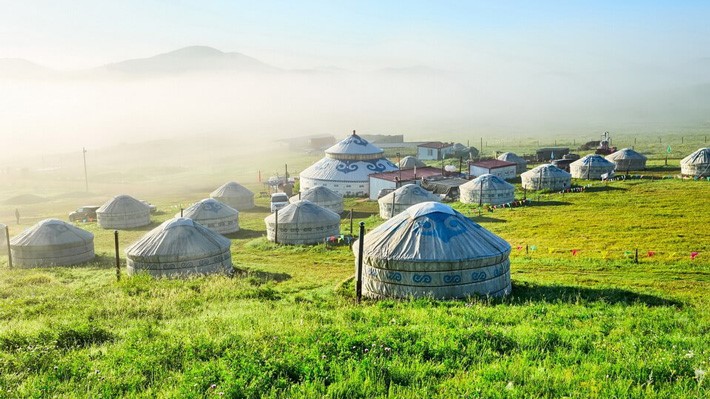 Trên thảo nguyên Mông Cổ rộng lớn, khắp nơi trên mặt đất đều có thể nhìn thấy “những bông hoa trắng”, chúng là những ngôi nhà nhỏ bằng lều của người Mông Cổ, nhìn từ xa, chúng giống như những viên ngọc trai tỏa sáng trên tấm vải nhung mềm mại, càng giống những bông hoa sen trắng nở trên thảo nguyên anh.